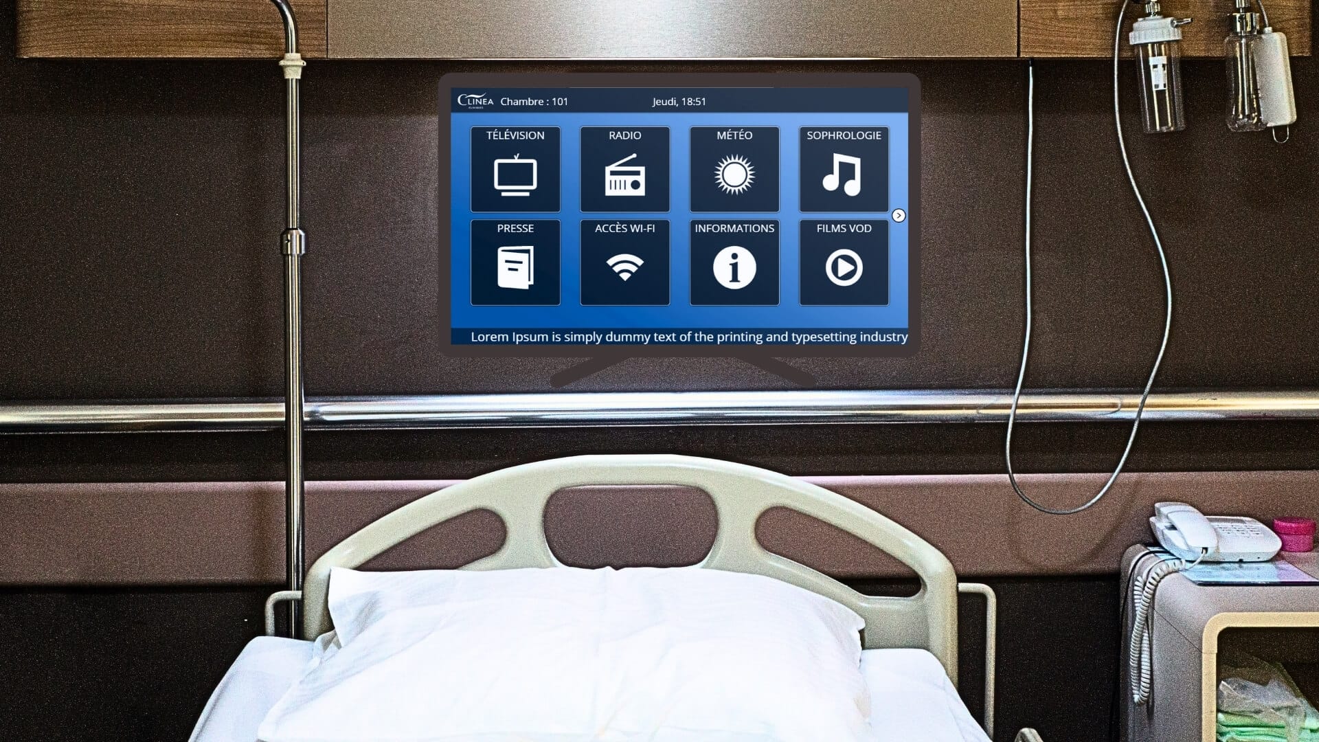 Améliorez le confort des patients et optimisez le quotidien du personnel grâce aux solutions multimédias de la chambre connectée Hoppen.